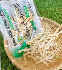 一般的な切り干し大根と違い太目で皮付きの為、非常に歯ごたえがあります。